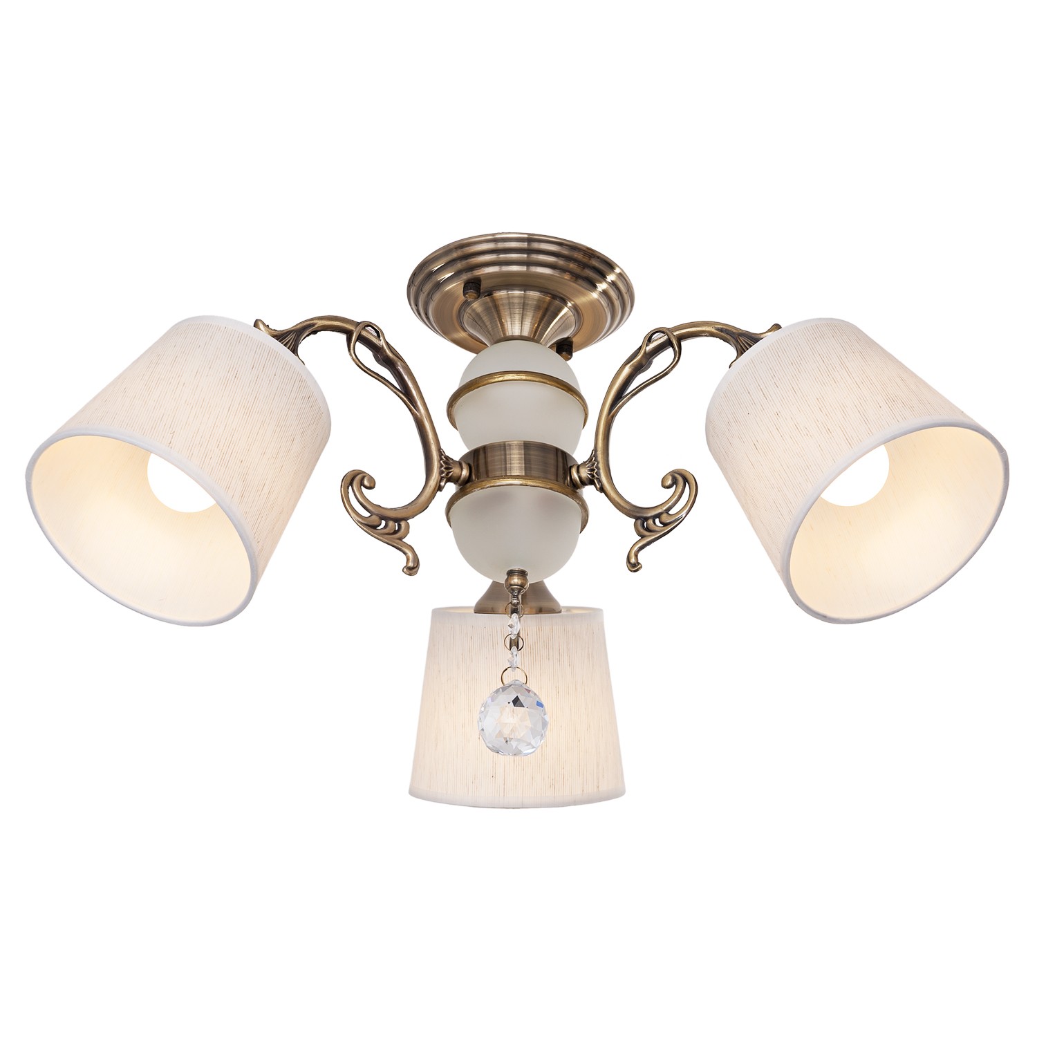 Потолочный светильник 28070A/3AB BGE от бренда ЭкономСвет. Каркас выполнен из материалов металл и стекло; цвета: античная бронза и белый. Плафоны (светорассеиватели) выполнены из материала текстиль, цвет бежевый. Цоколь E27 рассчитан на лампы максимальной мощности до 40 Вт, а максимальная площадь освещения составит до 7 м².