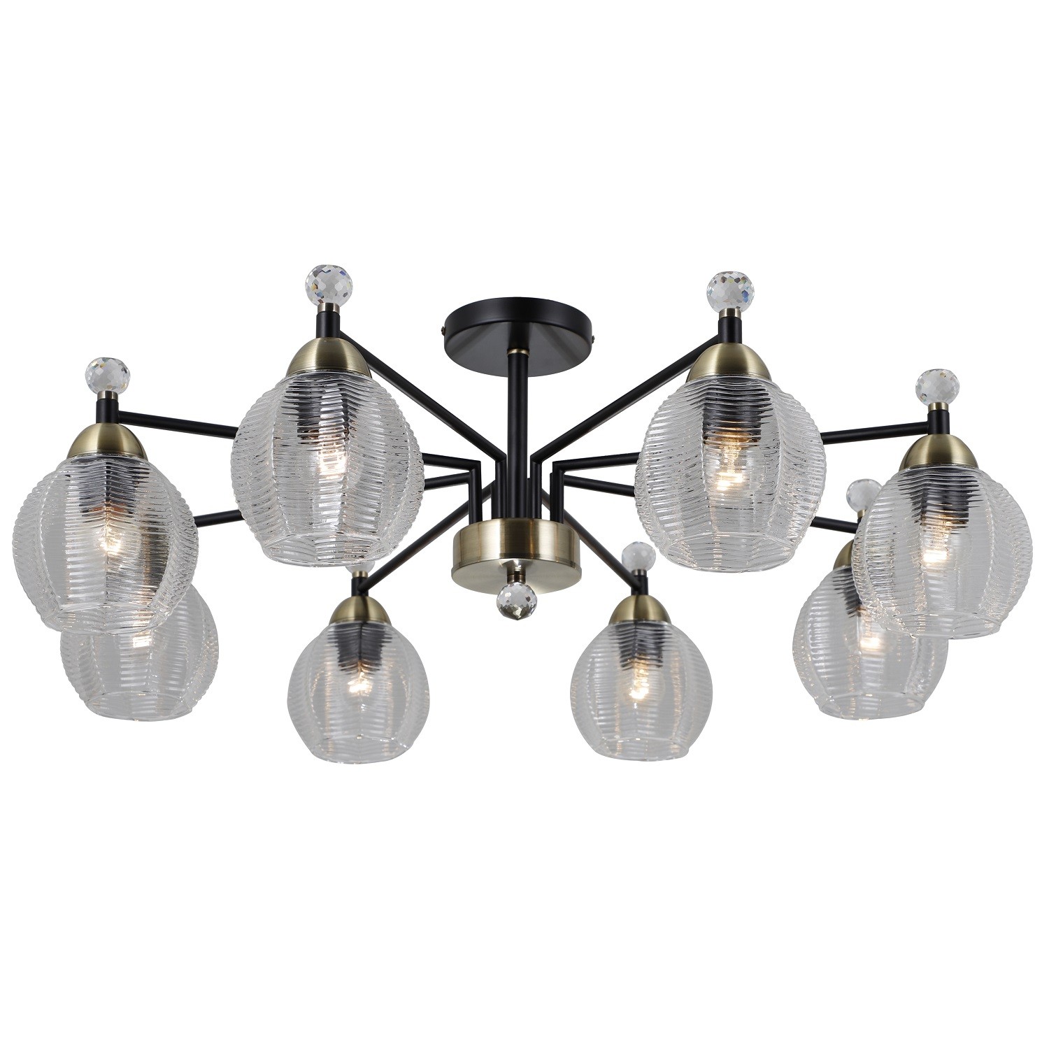 Потолочная люстра G11090/8MBK+BRS CL от бренда Gerhort. Каркас выполнен из материала металл; цвета: черный матовый и бронза. Плафоны (светорассеиватели) выполнены из материала стекло, цвет прозрачный. Цоколь E27 рассчитан на лампы максимальной мощности до 40 Вт, а максимальная площадь освещения составит до 18 м².