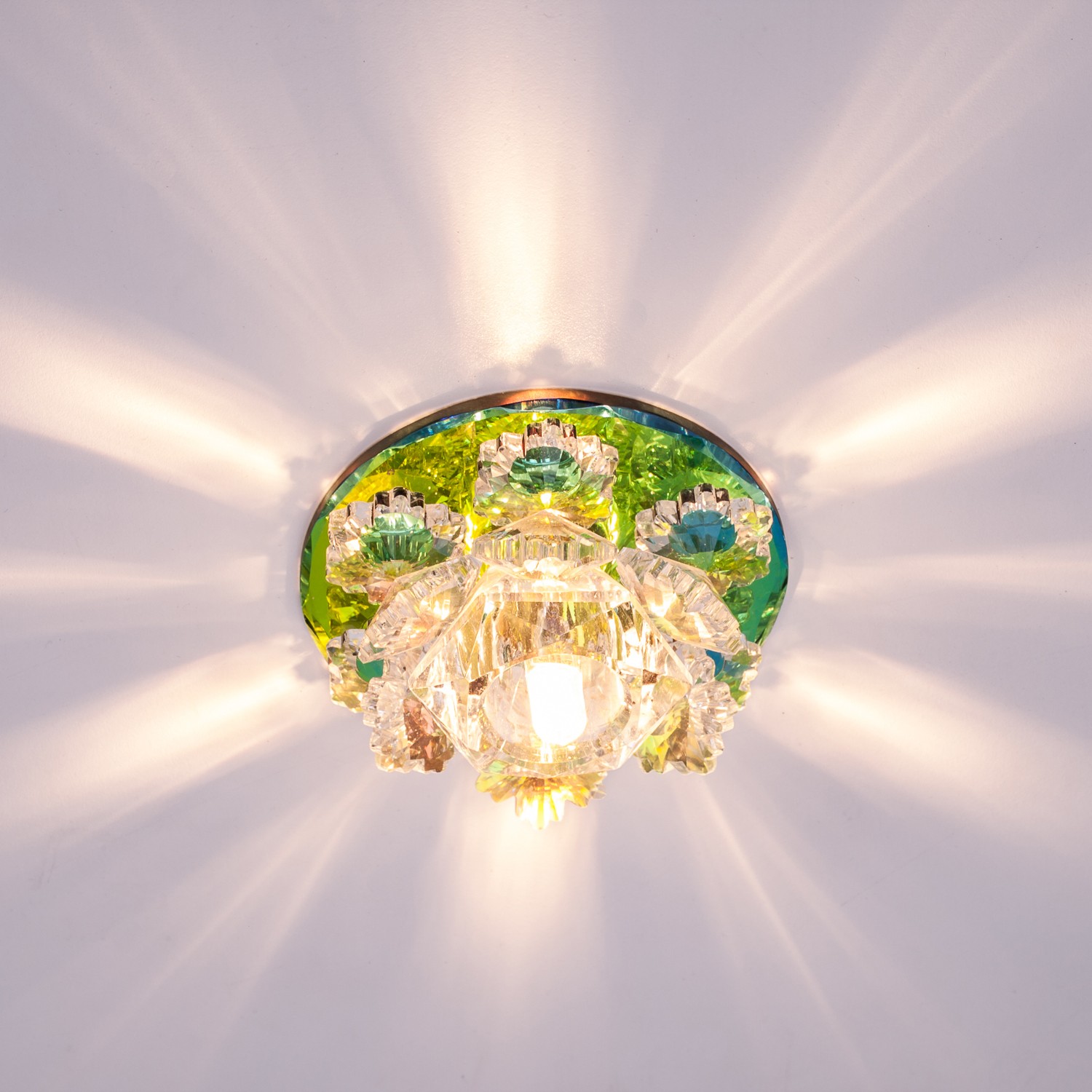 Точечный светильник F3832 RNB CL от бренда ЭкономСвет. Каркас выполнен из материала стекло, цвет зеркальный цветной. Цоколь G4 рассчитан на лампы максимальной мощности до 35 Вт, а максимальная площадь освещения составит до 3 м².